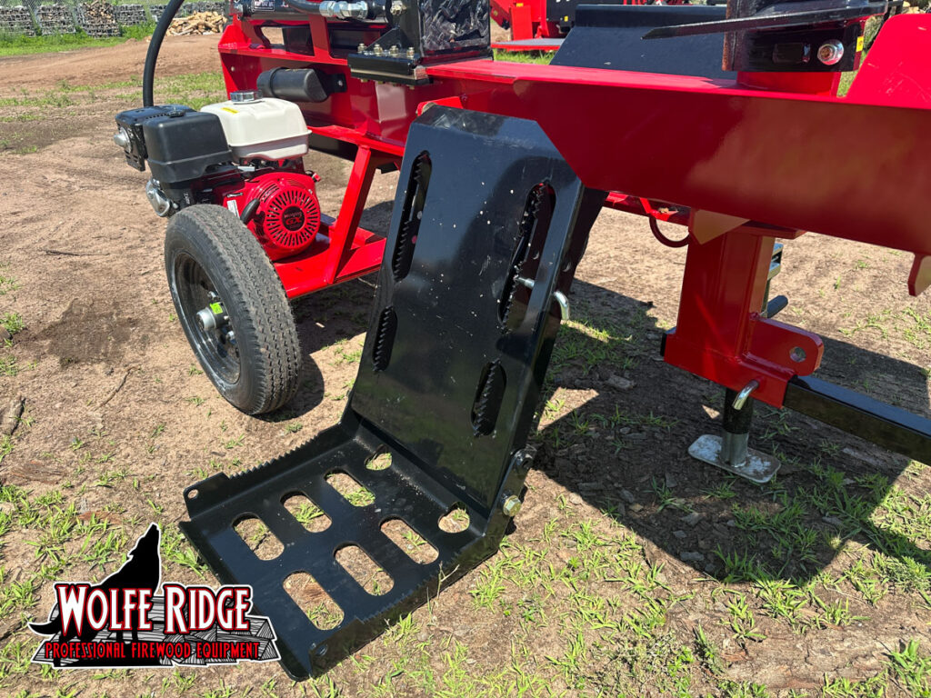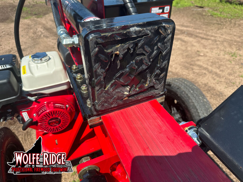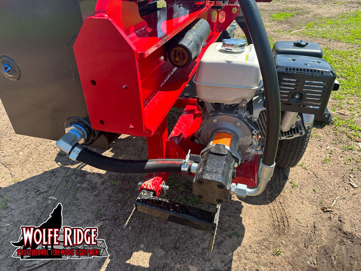 The 17 XS frame is designed, cut, and welded in house. It has an 8 inch beam and a 12 inch tall AR400 main wedge. With a 17 ton cylinder and 22 gallon per minute hydraulic pump, the 17 XS has a fast cycle time of 4.5 seconds! This means less time and effort spent on splitting wood, and more time for everything else. The 17 XS log splitter from Wolfe Ridge is a FAST commercial grade log splitter with some great basic features.