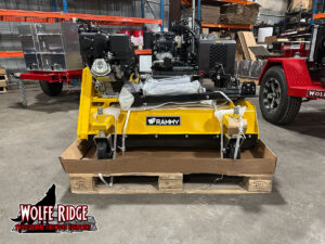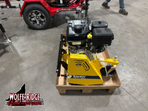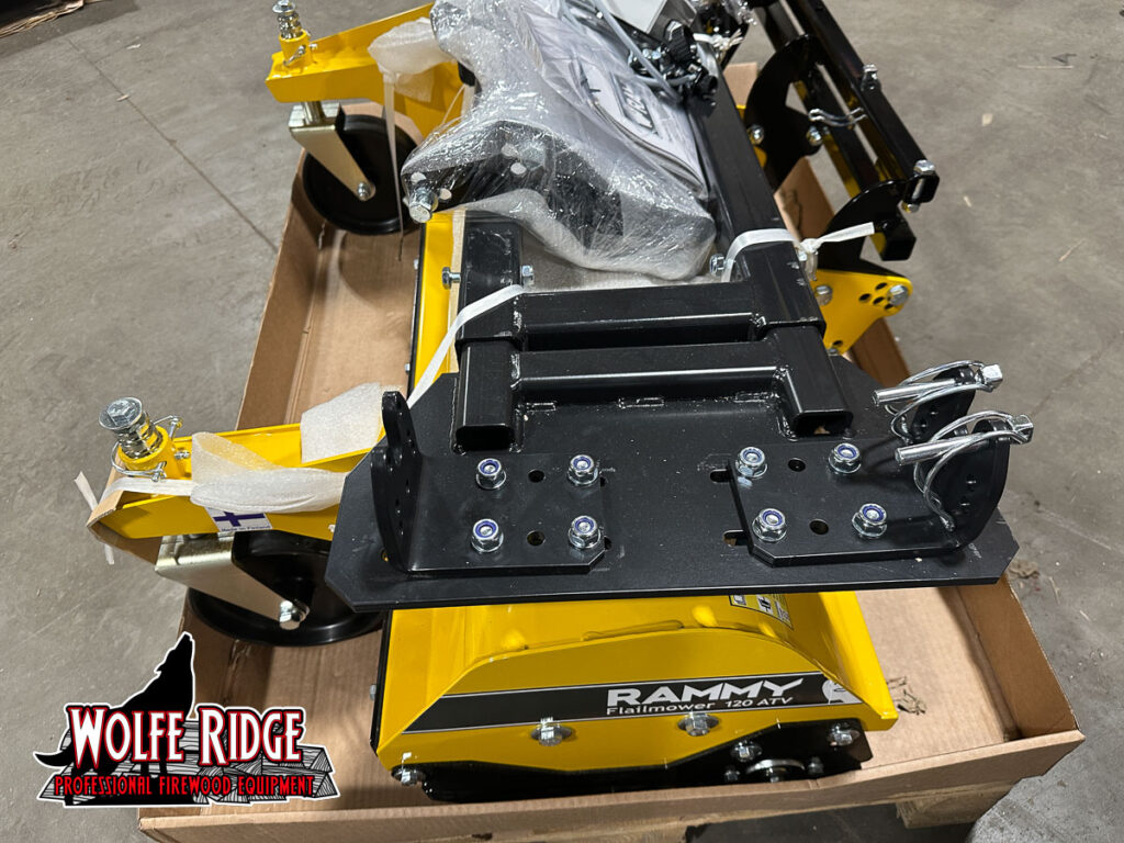 The Flail Mower includes a universally adjustable subframe that will attach to almost any snowplow mount bracket, as long as that bracket utilizes 10mm / 3/8″ pins to attach. This subframe is adjustable telescopically in and out, and it has adjustable L bracket ears to fit most plow mounts. This subframe then bolts onto the Rammy attachment. If your machine has 16mm, 19mm, or 20mm mounting posts, you can add the optional Rammy Lock / Hook Set for easy attachment.