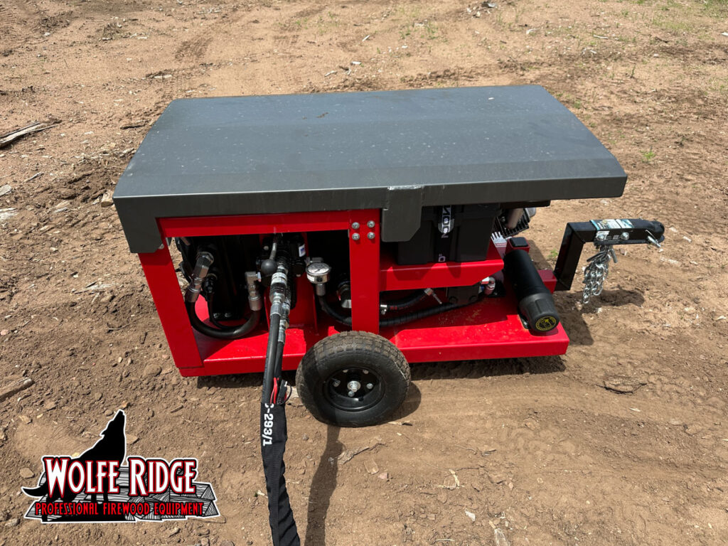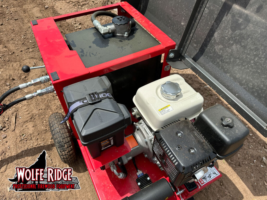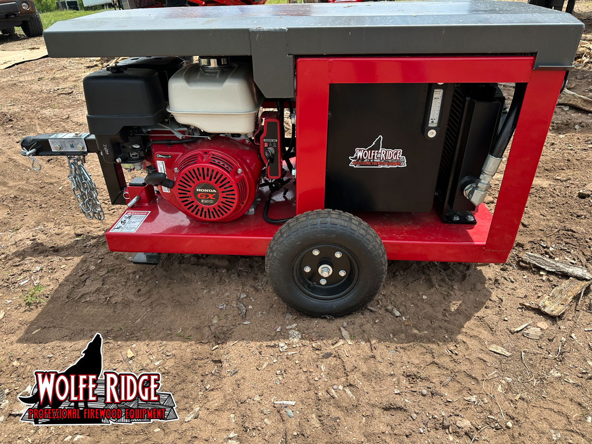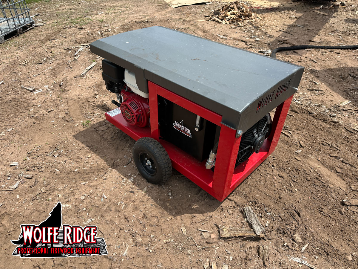 Power your auxiliary firewood cleaner, conveyor, or even small wood splitters easily with the WP-13C “Wolfe Pack” Hydraulic Power Pack from Wolfe Ridge. This power pack is the complete hydraulic power solution in one compact package. Featuring a Honda GX engine, 8GPM hydraulic pump, in-house made hydraulic tank, hydraulic oil cooler, and control valves, the Wolfe Pack is the complete hydraulic power solution ready to work in your woodyard!