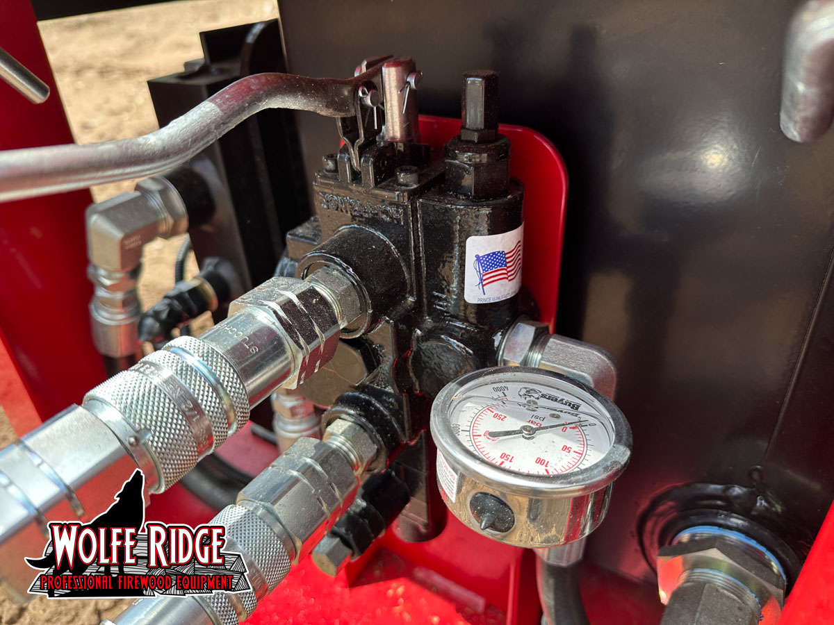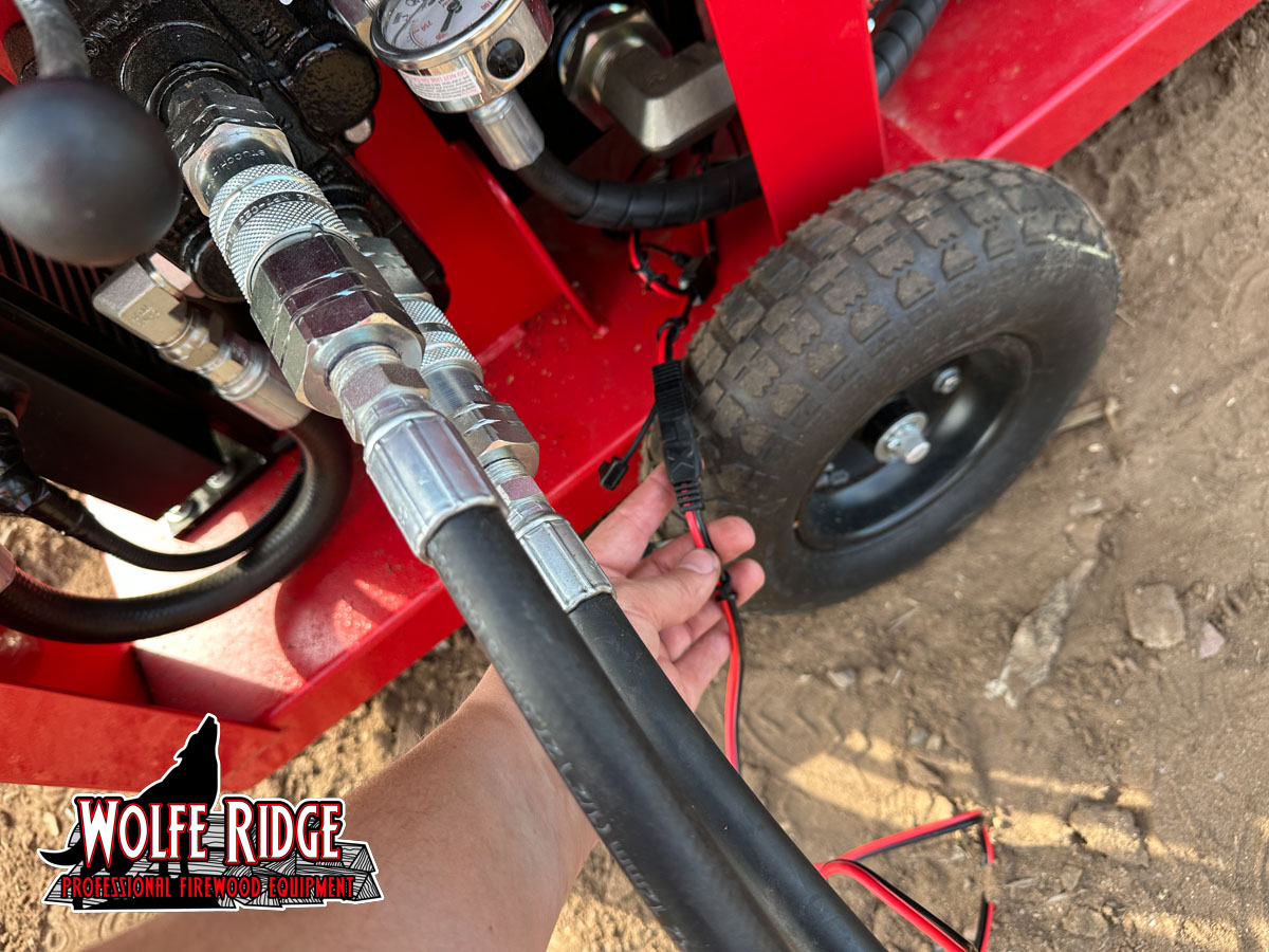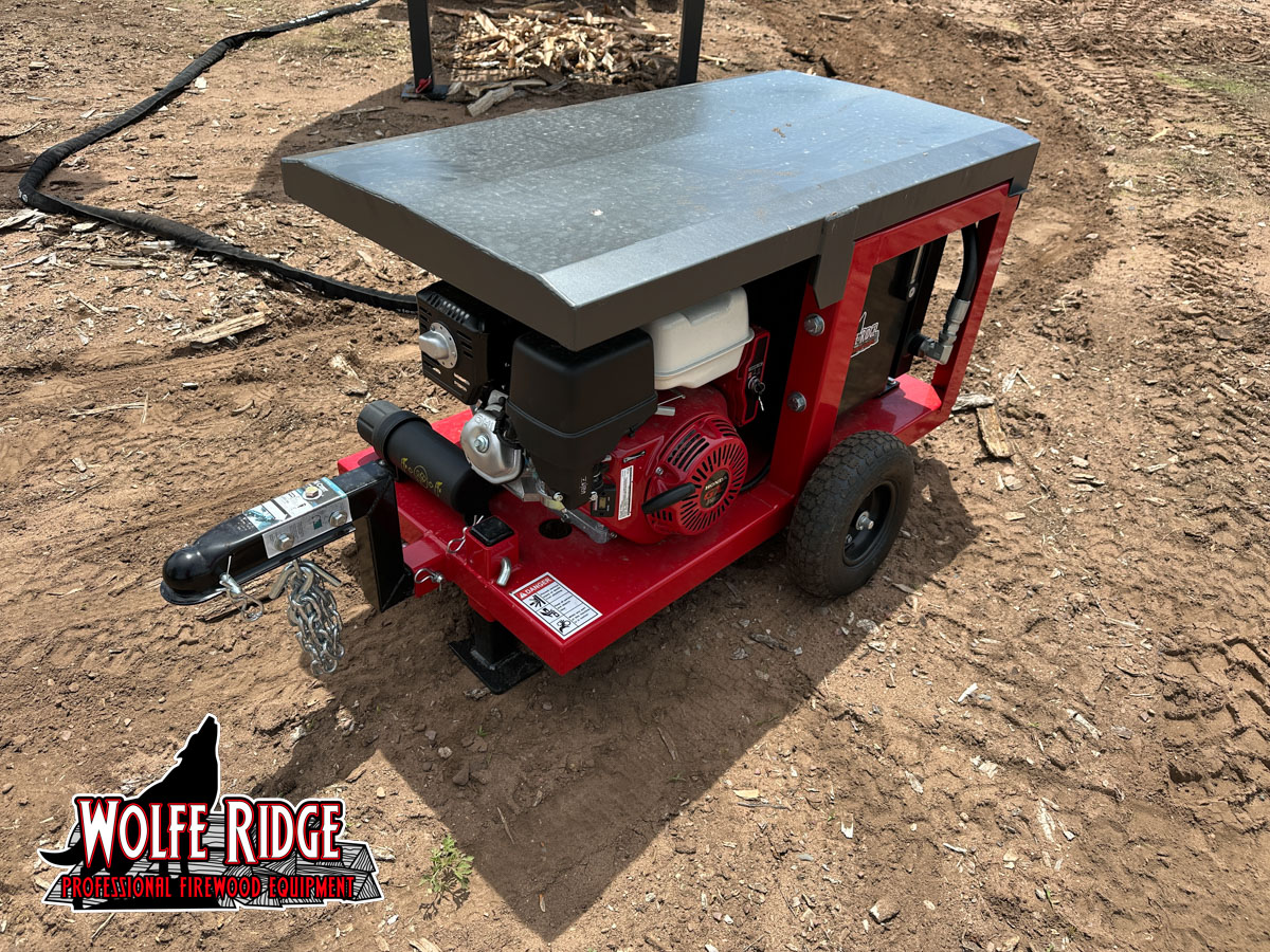 Power your auxiliary firewood cleaner, conveyor, or even small wood splitters easily with the WP-13C “Wolfe Pack” Hydraulic Power Pack from Wolfe Ridge. This power pack is the complete hydraulic power solution in one compact package. Featuring a Honda GX engine, 8GPM hydraulic pump, in-house made hydraulic tank, hydraulic oil cooler, and control valves, the Wolfe Pack is the complete hydraulic power solution ready to work in your woodyard!